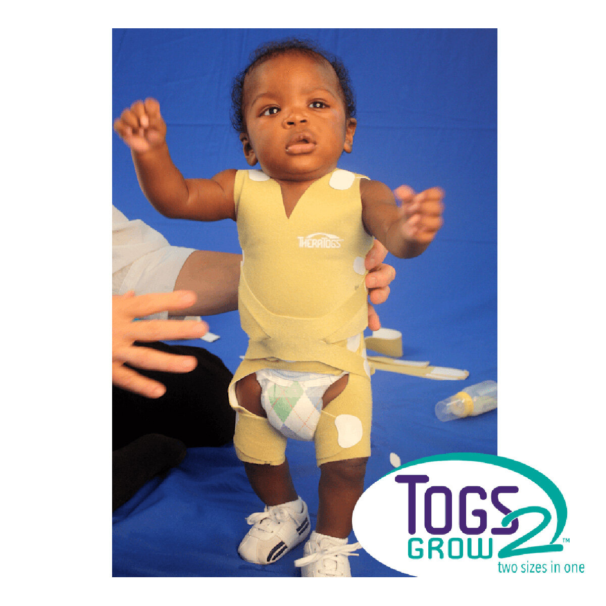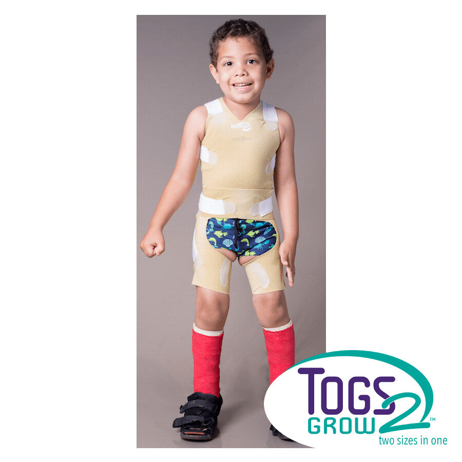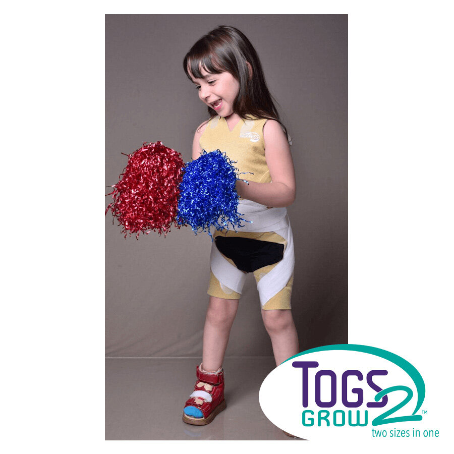 The Togs2Grow configuration provides “next size up” convenience allowing for no need to place another order. The system consists of two garments and a small set of straps, resulting in a basic TheraTogs system that’s simple to apply, cost-effective, and easy to use.