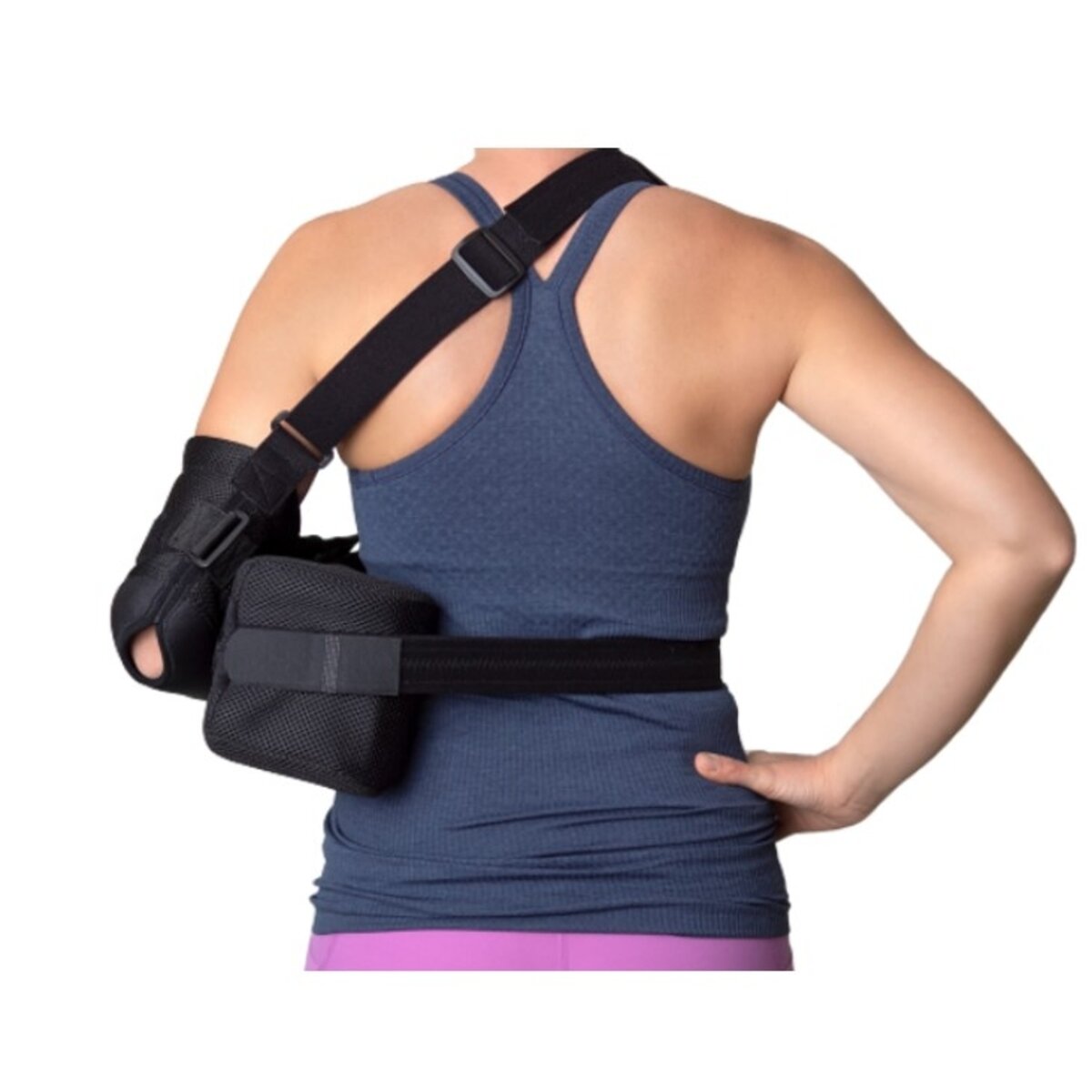The Abduction Shoulder Sling provides post-operative shoulder immobilization and injury support. The Abduction Shoulder Sling features an adjustable platform that can be broken down or built up to provide maximum support and relief throughout all healing stages. TX2 Breathe Thru Mesh, quick-release buckles, anti-migration thumb rest, and padded neck strap increase wearability and patient comfort.