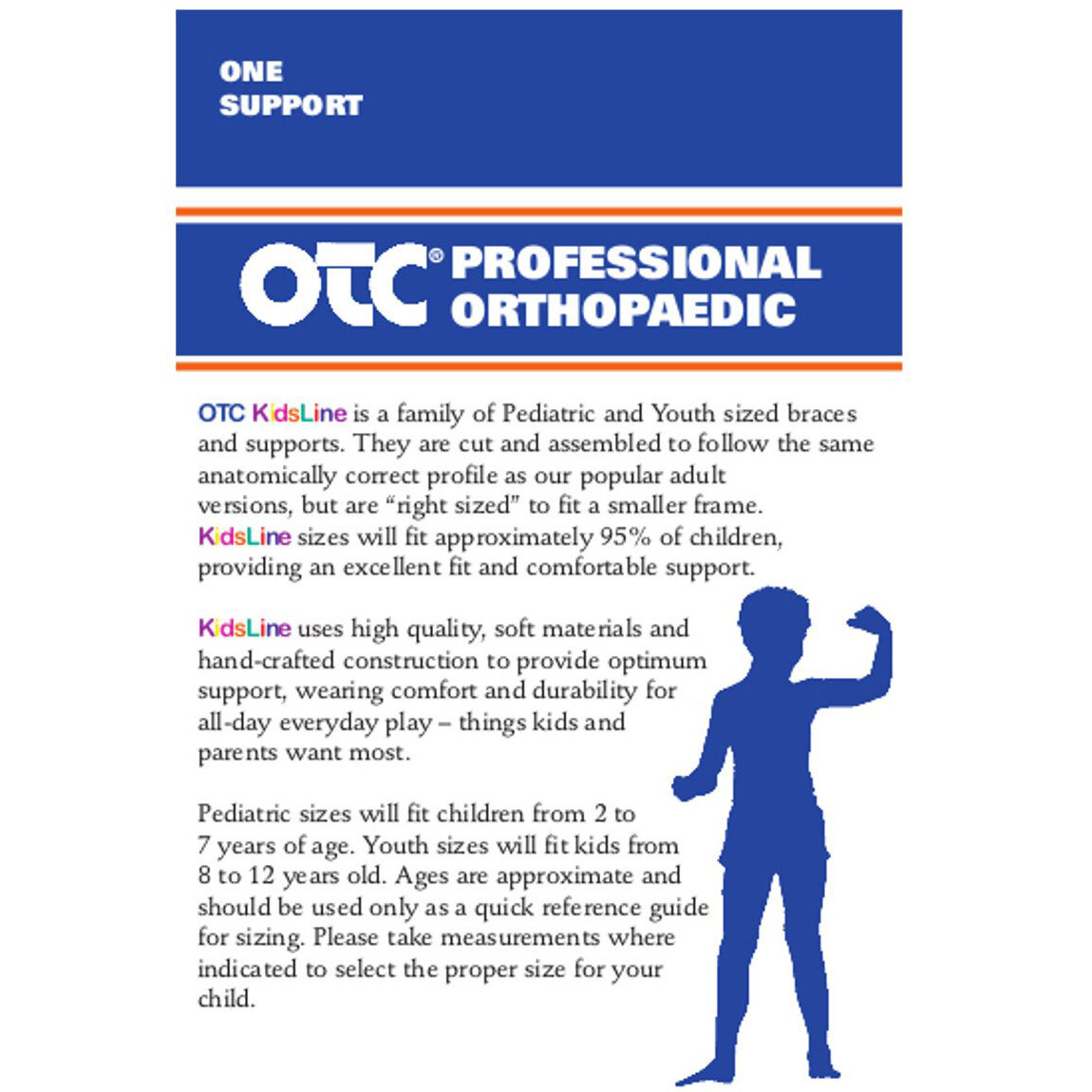 The OTC 0320 KidsLine cradle arm sling provides well balanced support to the arm, evenly distributing its weight. KidsLine is OTC's family of Pediatric and Youth sized products. They are cut and assembled to follow the same anatomically correct profile as our popular adult versions, but are "right sized" to fit a smaller frame.