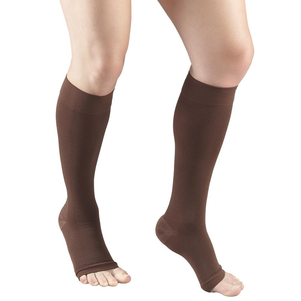 Designed to help relieve moderate conditions associated with poor circulation. Truform medical stockings feature classic styling and a smooth knit texture fabric that conceals unsightly blemishes. The open toe feature allows for easy toe inspection and permits one standard size to fit a variety of foot dimensions. For men and women.