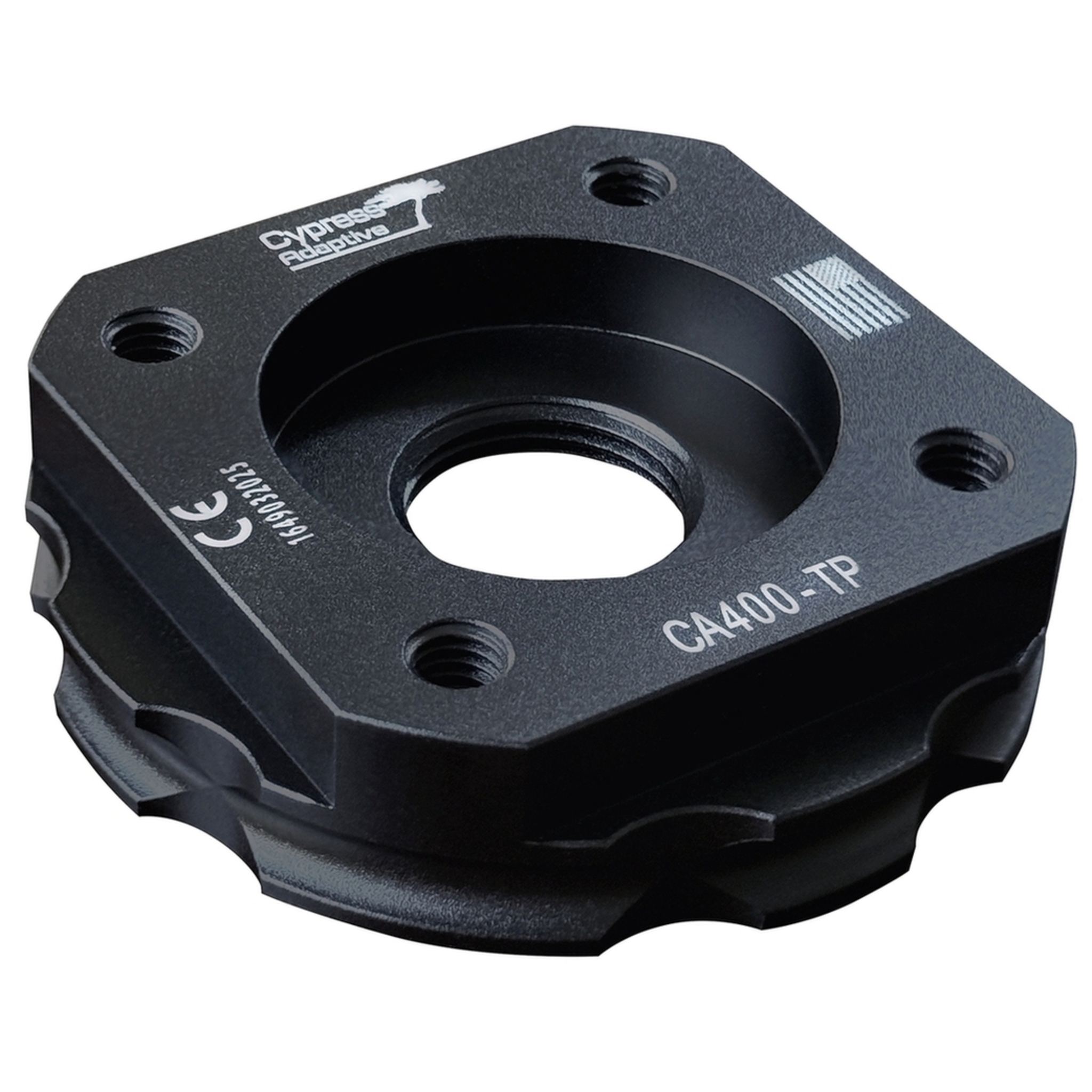 The Cypress Adaptive Universal Tie-In Plate is a 4-Hole Plate in-line system that can be used on its own or as a passive expulsion or elevated vacuum suspension. The Plate can be used in both definitive and check sockets. Like the CA400-TIP, the Universal Tie-In Plate can accommodate all the same four valve inserts but is smaller in diameter with a square shape on one side.