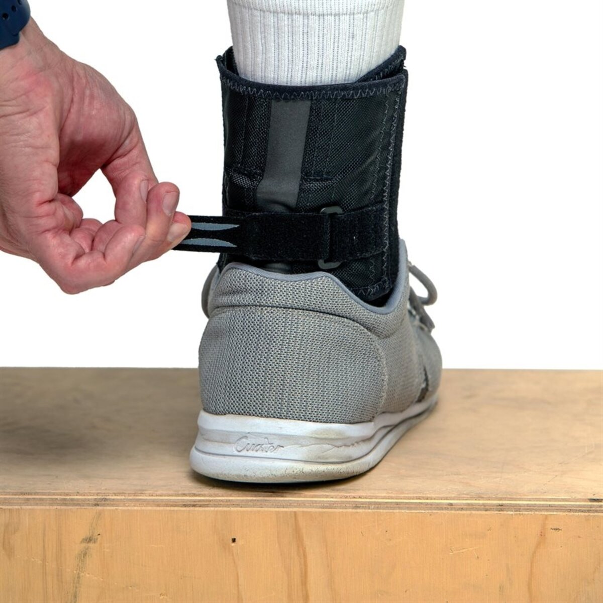 - Posterior tension strap tightens for a snug fit