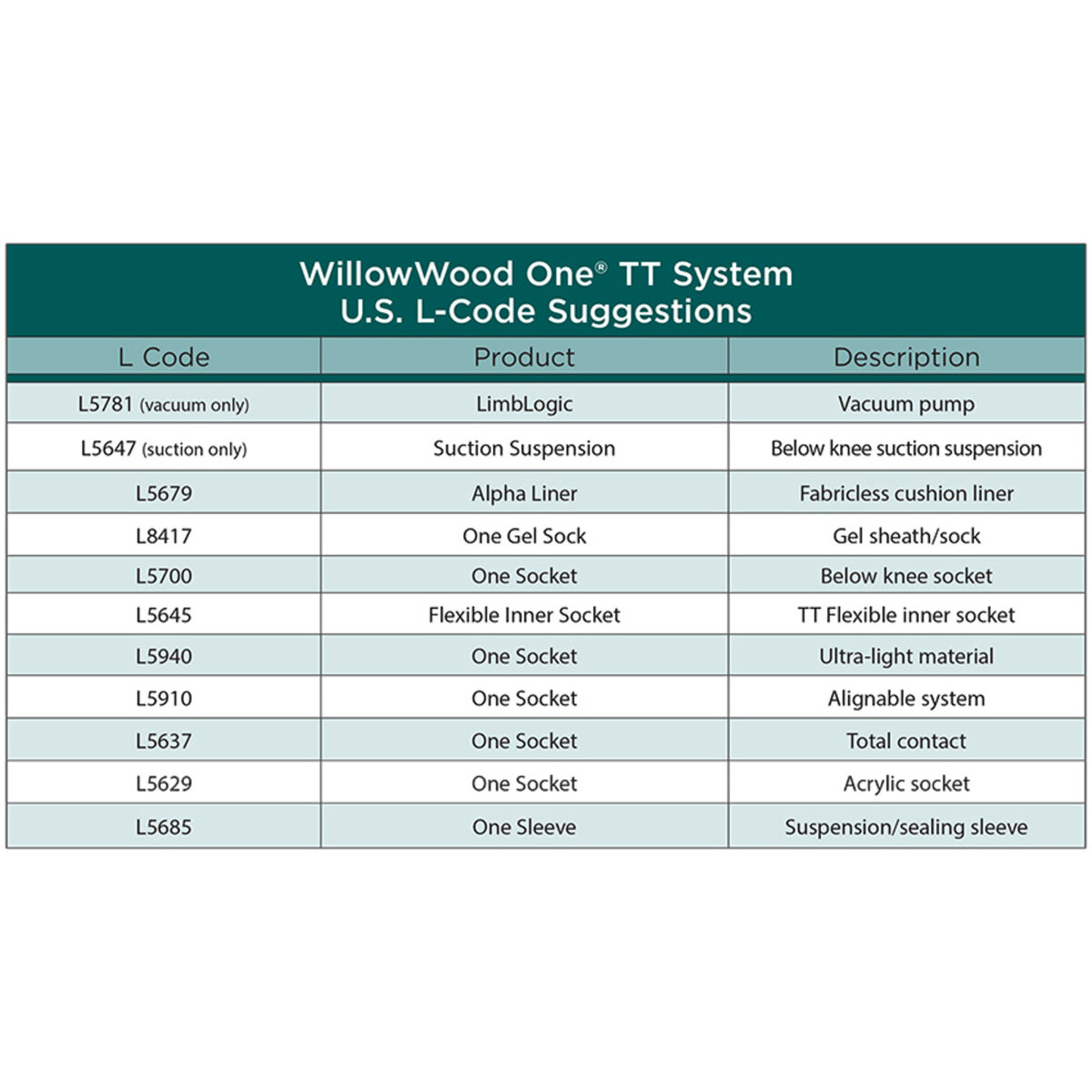 The WillowWood One® System provides transtibial amputees with advanced socket technology, for use with either elevated vacuum or suction, delivers an airtight seal, an internal sleeve, and socket security. Components of the WillowWood One TT system create an airtight system that moves with an amputee’s residual limb for reliable suspension and comfort.