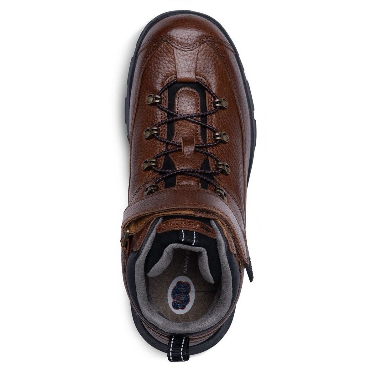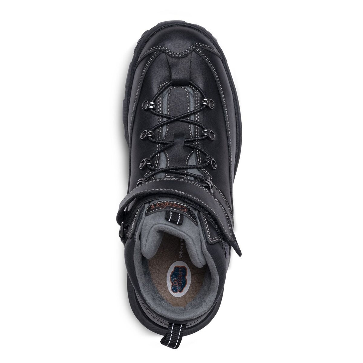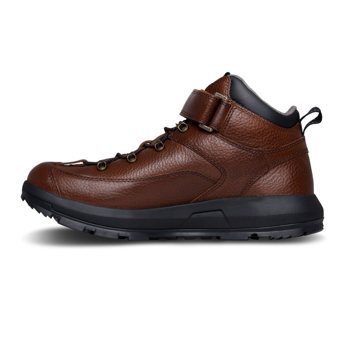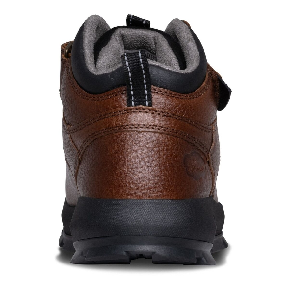 The Dr. Comfort® Yukon is a comfortable leather hiking boot designed for versatility. It features a unique closure system using elastic across the instep for accommodating movement, along with an easy-to-use hook-and-loop strap to secure the fit. The rugged outsole provides durability and stability across various terrains. Crafted from soft, full-grain leather in black or chestnut brown, the Yukon delivers an outdoorsy look with a supportive feel for those seeking comfort.
